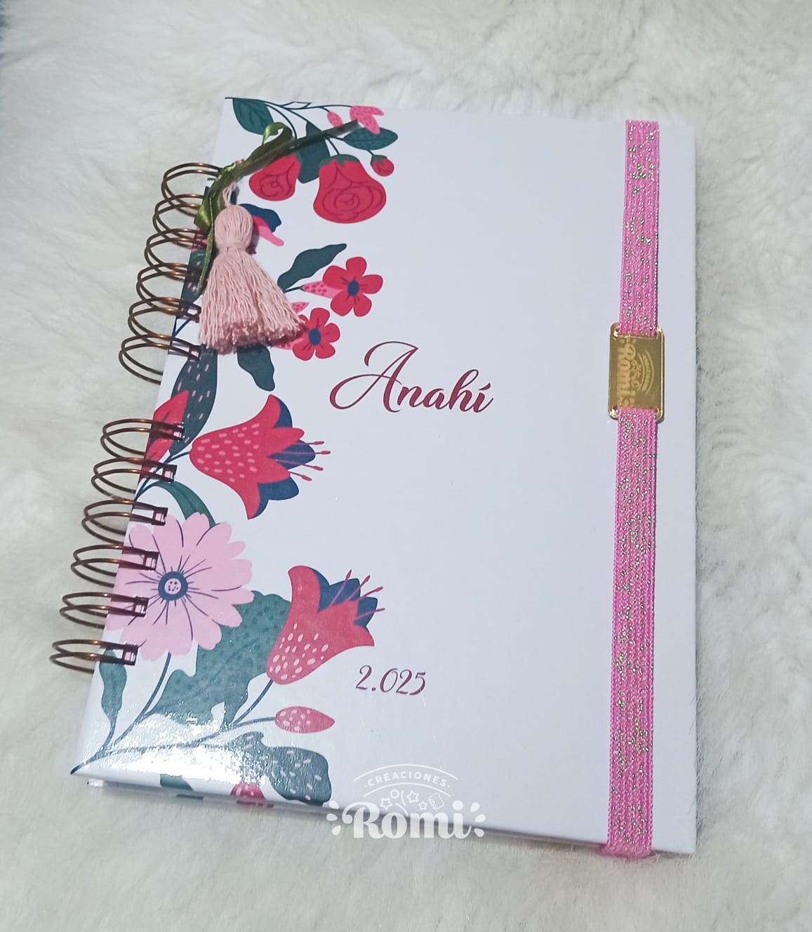 Las agendas son de tapa dura laminada, anillado metálico ,sobre interior , elástico de cierre y stickers troquelados.