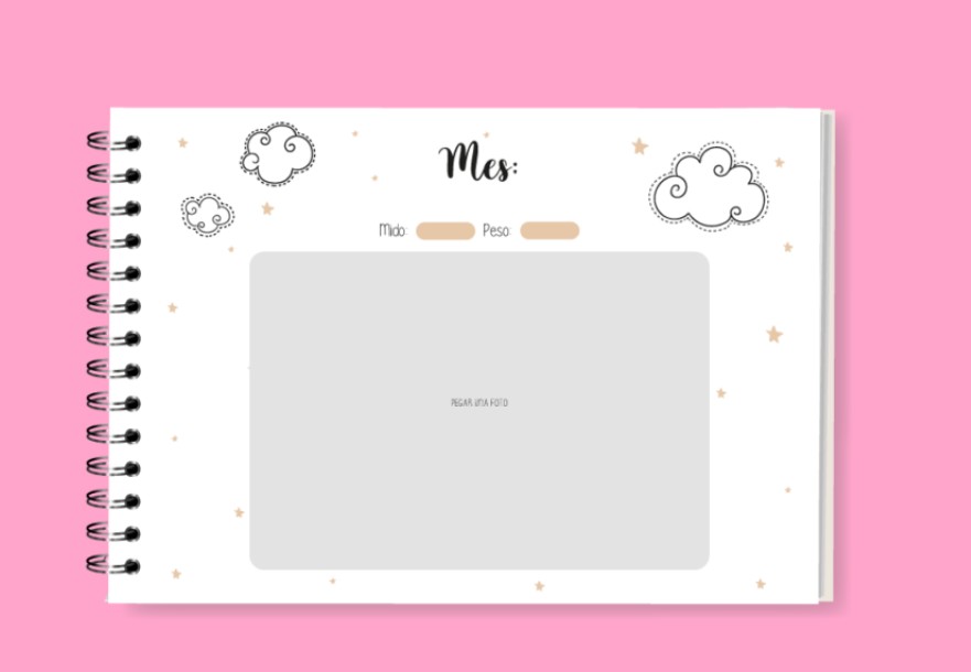 Hojas para fotos de 13cm x 9cm y para poner peso y talla desde el Mes 1 al 11